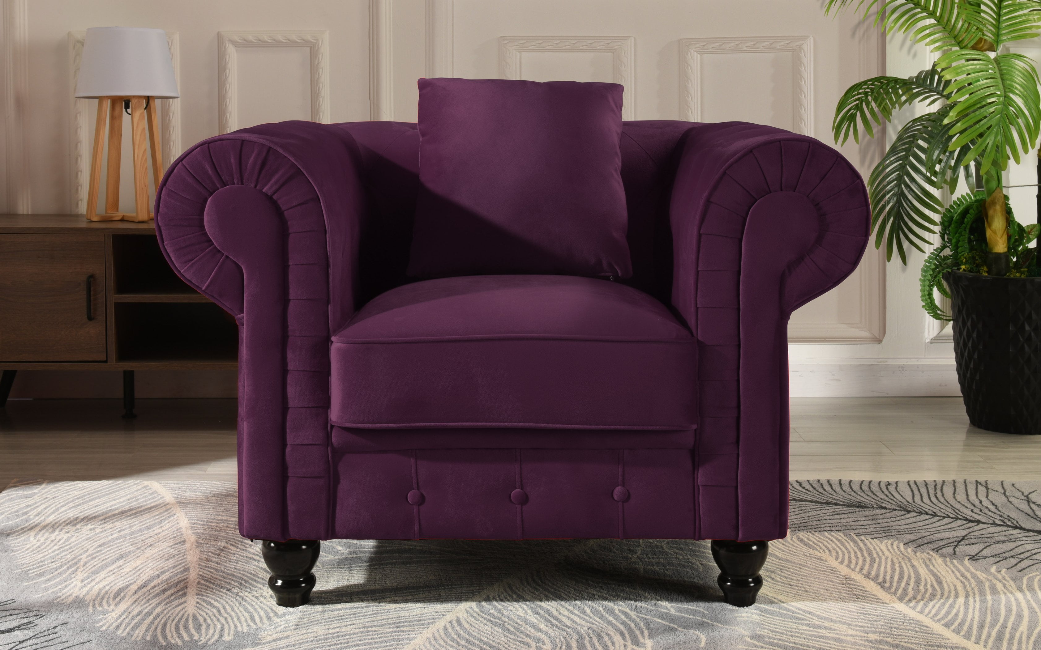 Belleze modern accent chair roll arm living room cushion fabric with wooden legs, purple.